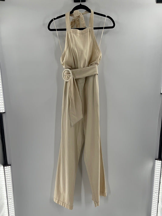 Free People Cream Halter Backless Belted Jumpsuit (Size XS)