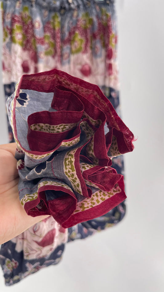 Vintage 100% silk Lounge Bottoms Hippy Blue/Maroon Yoga Motif (Small/Medium)