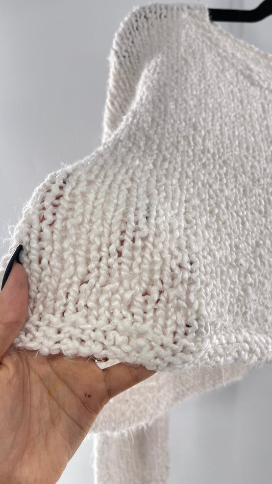 White Slouchy Comfy + Cozy Knit Cropped Sweater (M)