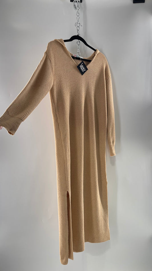 Free People Tan Knit Hoodie Maxi (Medium)