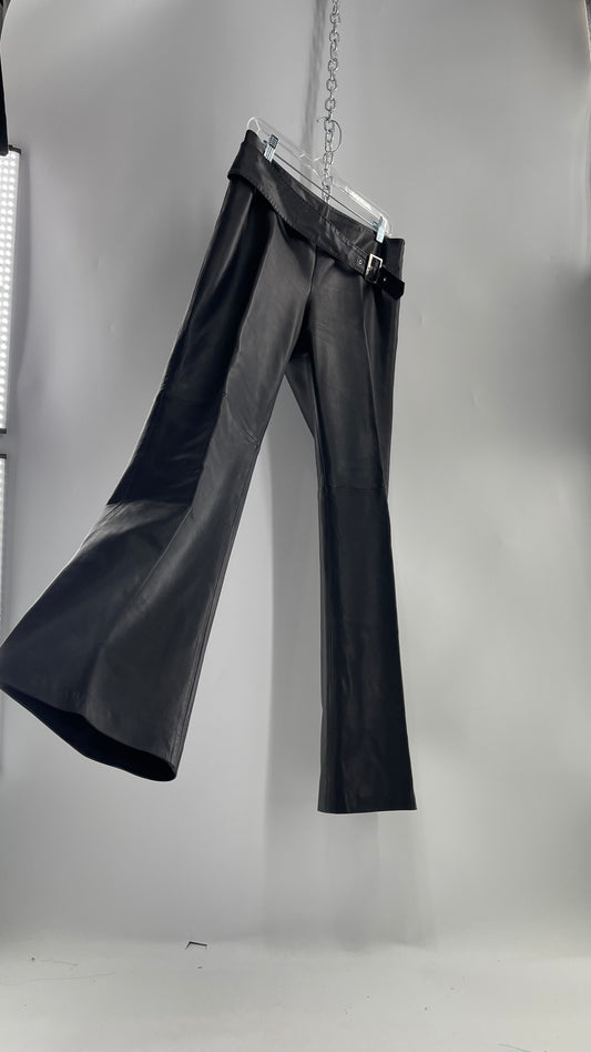 Cache 100% Lamb Leather Black Leather Kickflares with Grommet Hip Belt (8)