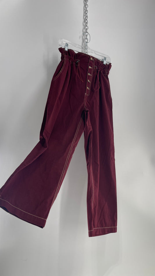 Maroon Urban Outfitters Flare Button Up Pants (M)