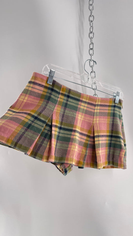 Free People Pink Plaid Pleated Micro Mini Skort with Tags Attached (4)