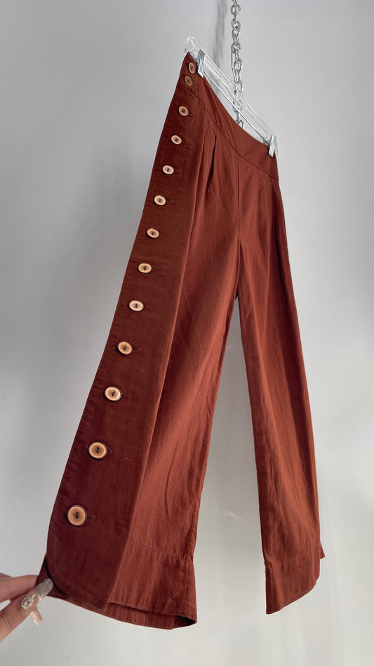 Anthropologie Brown Cotton Wide Leg Pants with Bronze Button Detailing (0)