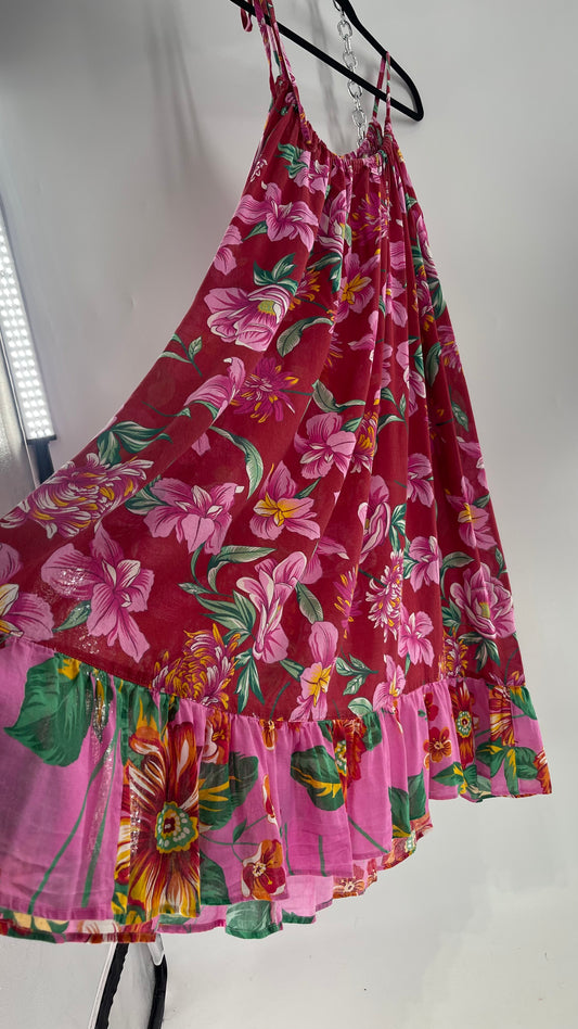 Handemade Brazilian Color Blocked Red/Pink Floral Maxi (One Size)