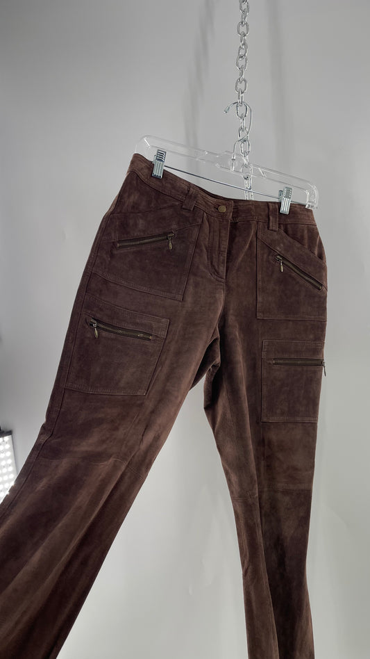 Vintage Context Petit Brown Suede Straight Leg Cargos with Pockets and Bronze Zippers (8P)