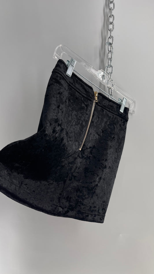 Black Velvet ‘Neoprene’ Lined Mini Skirt (Small)