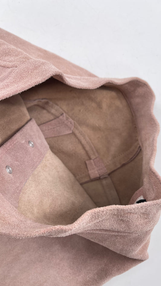 Free People Understated Leather Dusty Pink Suede Button Side Mini Skirt (Small)