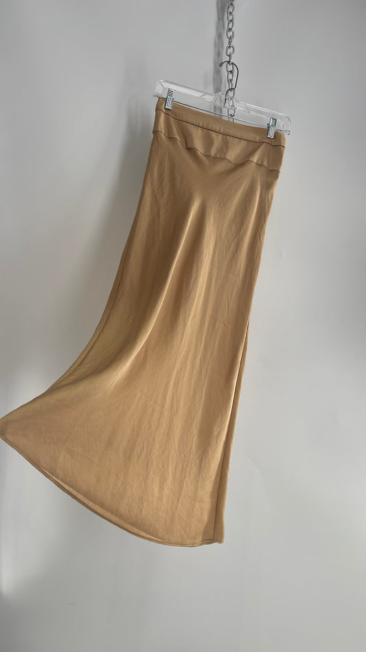 Free People Gold/Tan Silky Maxi Slip Skirt with Wide Waist Band (2)