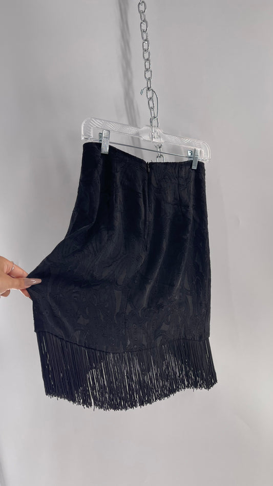 Anthropologie Black Paisley Textured Skirt with Fringe Trim (6)