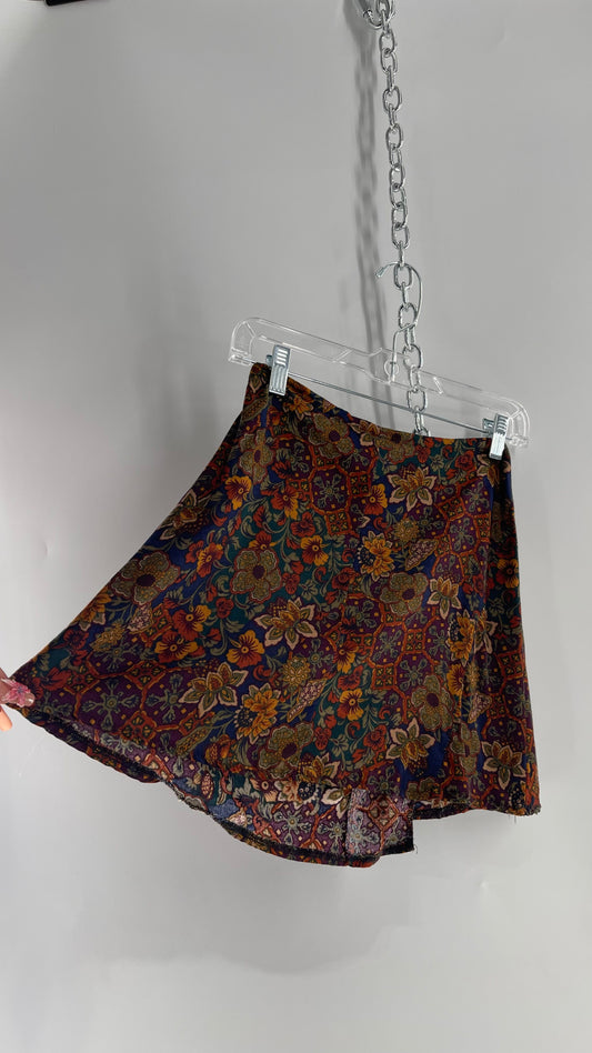 Side Tie Skirt Made from Vintage Fall Themed Paisley Skirt (S/M)