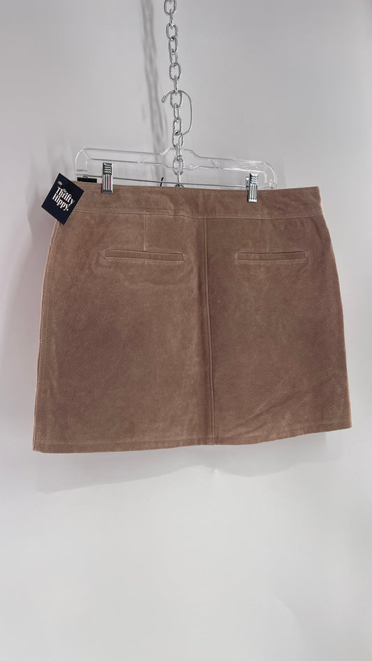 Blank NYC Taupe Tan Suede Leather Mini Skirt with Side Belt, Pocket, and Zipper Details (32)