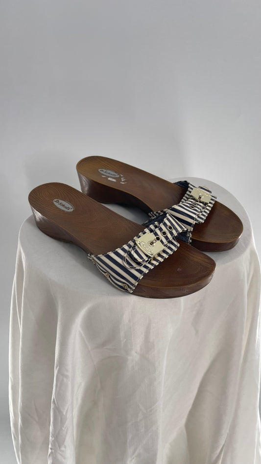 Vintage Dr. Scholls Striped Buckle Clog Sandal(6)
