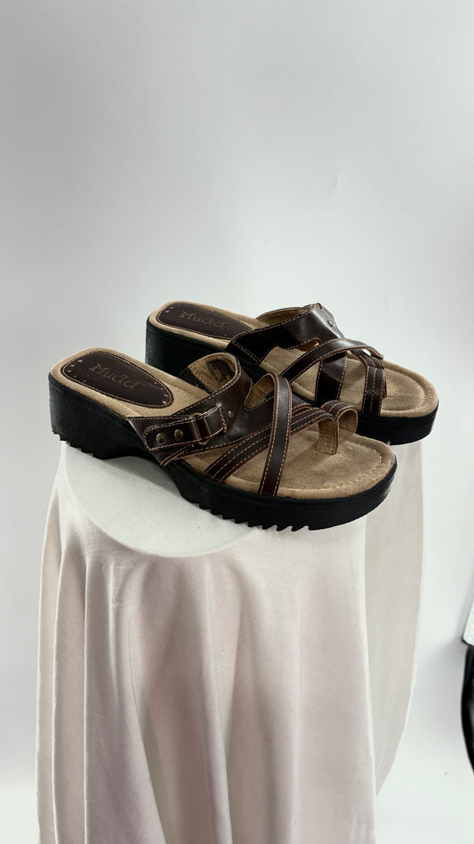 Vintage MUDD Block Heel Brown Leather Strappy Sandals (6.5)