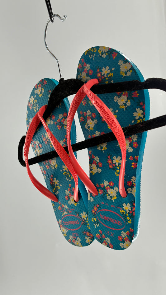 Blue and Neon Floral Havaianas NWOT (7/8)