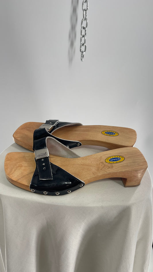 Vintage Dr.Scholls Black Studded Wooden Clog Sandal (8)
