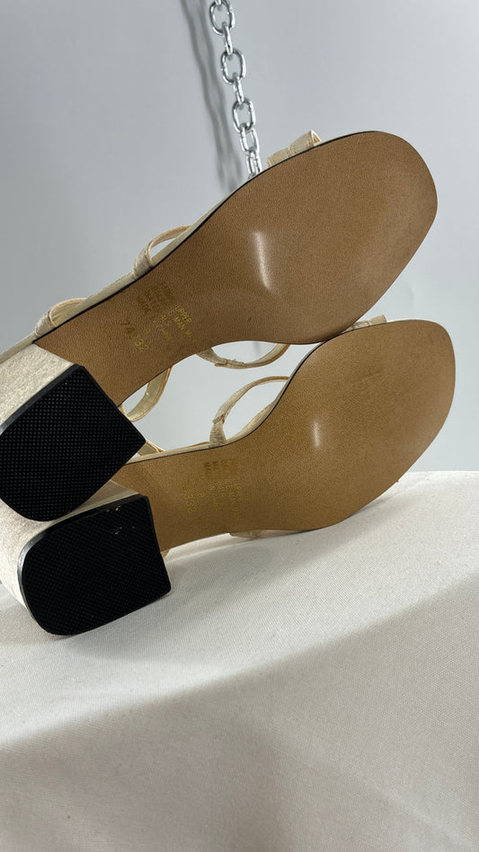 Vintage UNLISTED 1990s Strappy Ivory Block Kitten Heel Sandal (8)