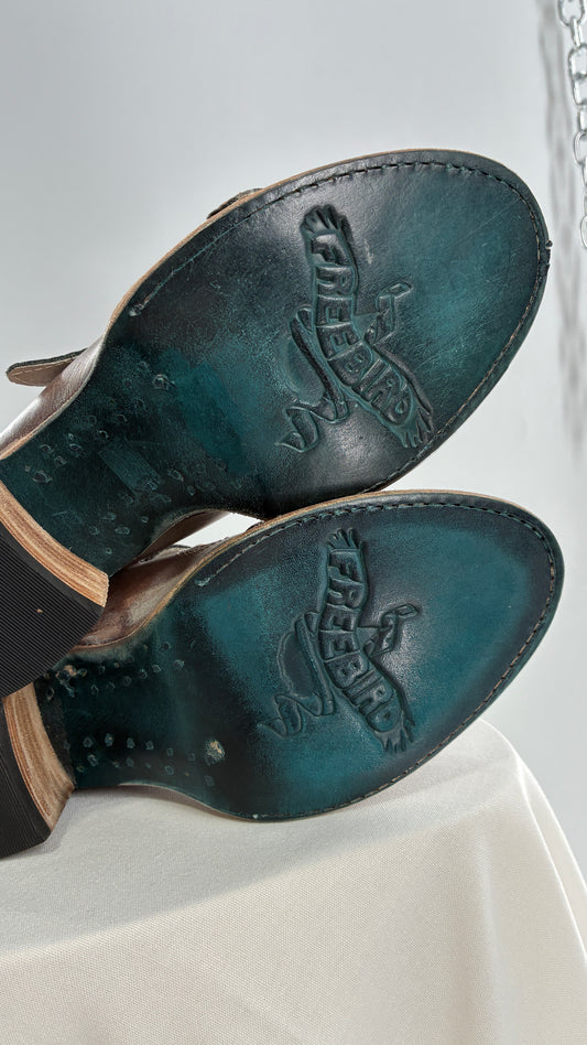 Free Bird Caprice Leather Sandal with Bronze Embossed Straps and Stamped Sole Made in Mexico (7)