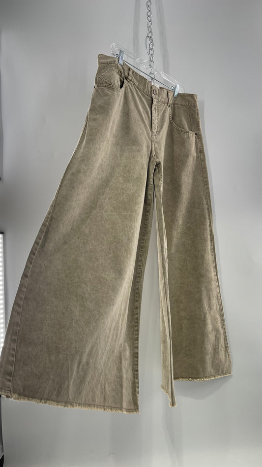 BDG Tan Ultra Wide Leg Acid Wash Jeans with Raw Edge Hem (32)