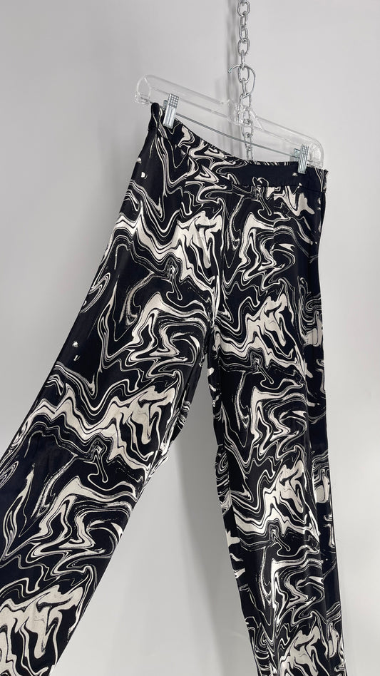 JUST Marble Washed Black\White Silky Flared Trouser (4?)