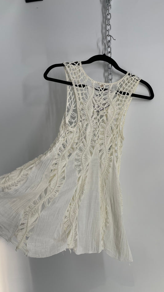 Ecoté White Tank Top with Ivory Knit Details (M)