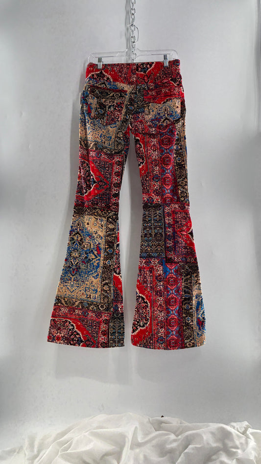 Free People Red, White, Blue Tapestry Patchwork Corduroys with Tags Attached (27)