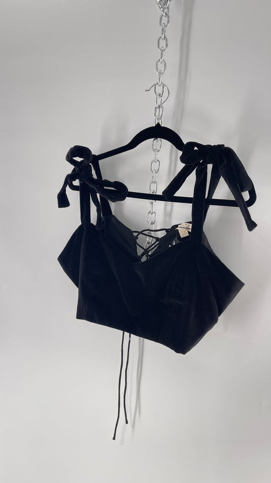 Letmebe Anthropologie Black Velvet Cropped Tank with Delicate, Romantic Tie Shoulders and Lace Up Back (XL)Regular price $34.00Regular priceUnit price per$98.00Sale price $34.00Sale