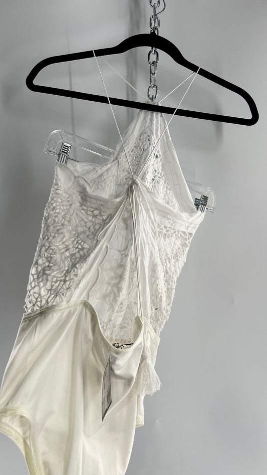 Intimately Free People White Eyelet Lace Open Back Bodysuit (Medium)