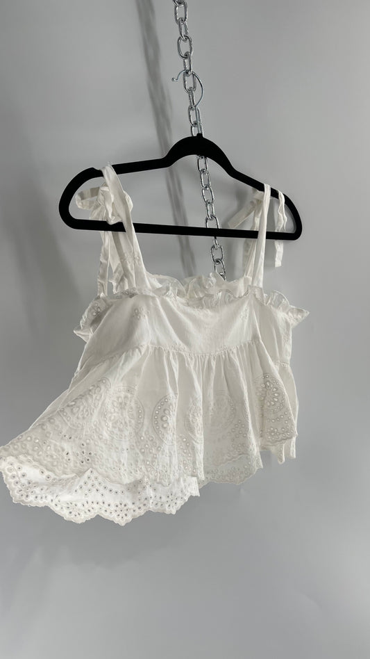 Urban Outfitters Eyelet Lace Hem Tank with Bow Shoulders (Large)