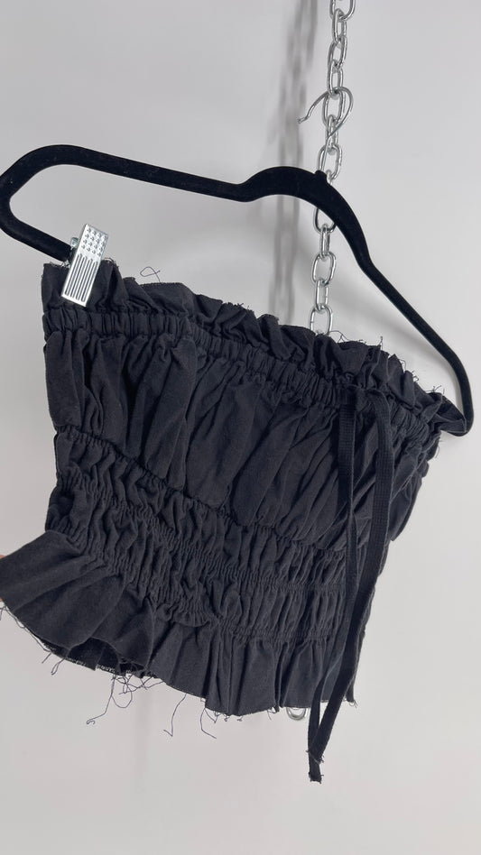 Free People Black Cotton Ruched Tank with Bow Bustline and Tags Attached (XS)