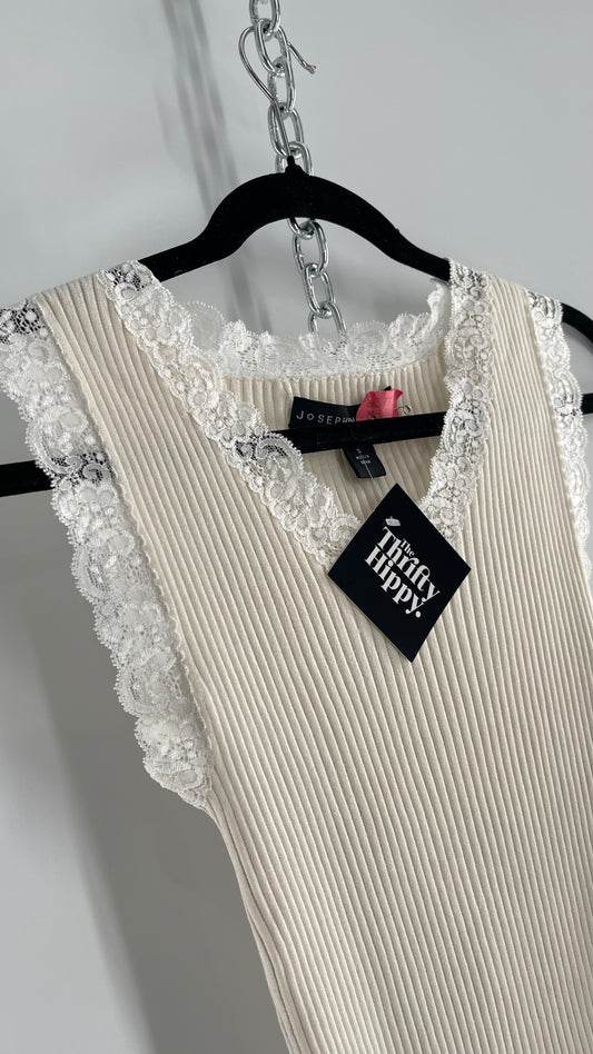 Vintage Josephine Chaus Ribbed Beige Tank with Lace Lining (Small)