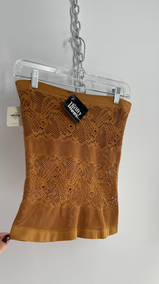 Intimately Free People Mustard Stretchy Lace Tube Top with Built in Bandeau Bra (M/L)