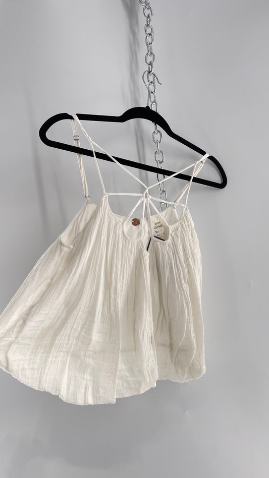 Free People White Cotton Bubble Sleeveless Blouse with Strappy Neckline (M)