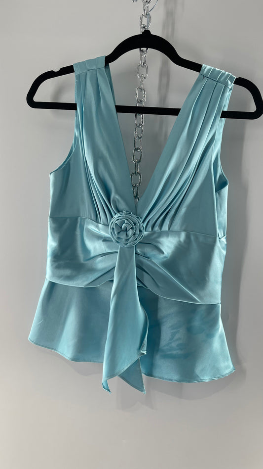 Vintage Jessica McClintock Baby Blue Satin Pleated Sleeve Tank with Draping and Rosette (8)