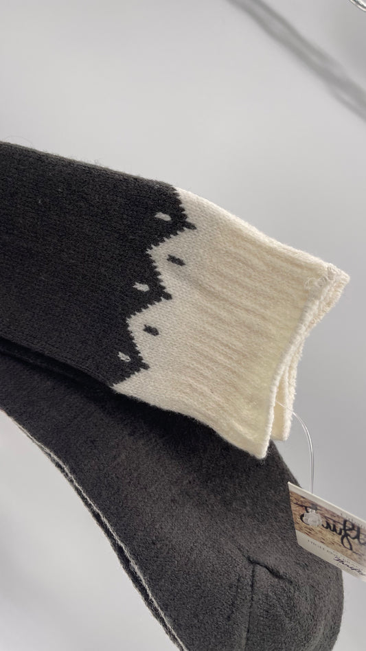 Free People Knit Dark Grey Thigh Socks with White Trim