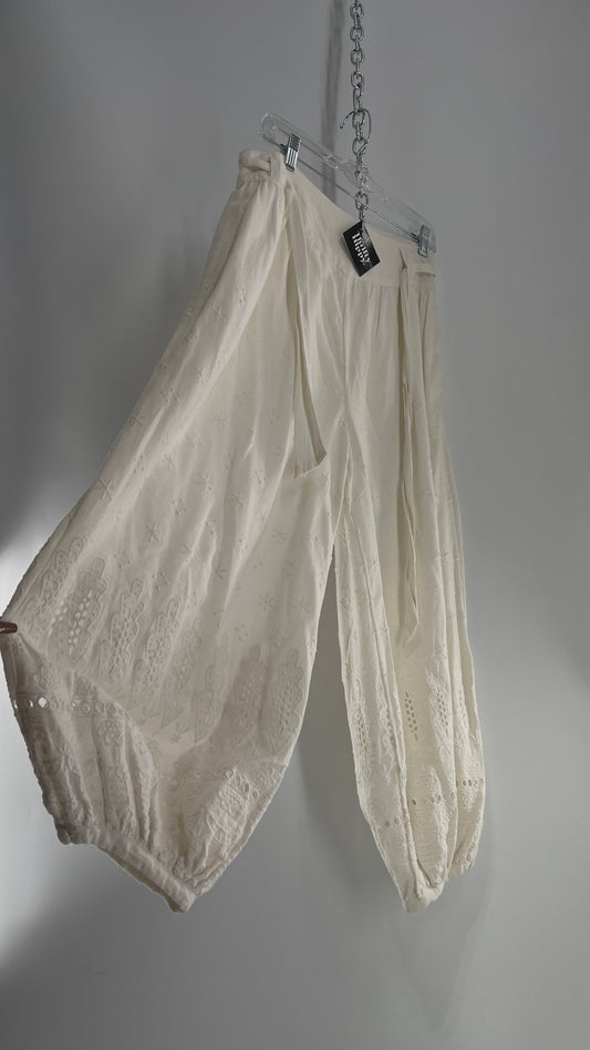 Free People Off White Eyelet Lace Cotton Gauze Embroidered Haram Pant (0)