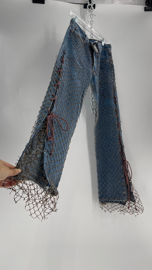 Custom - Fishnet Levi’s with Grommets and Lace Up Sides (Waist 29 Length 30) Fits Like a 26*