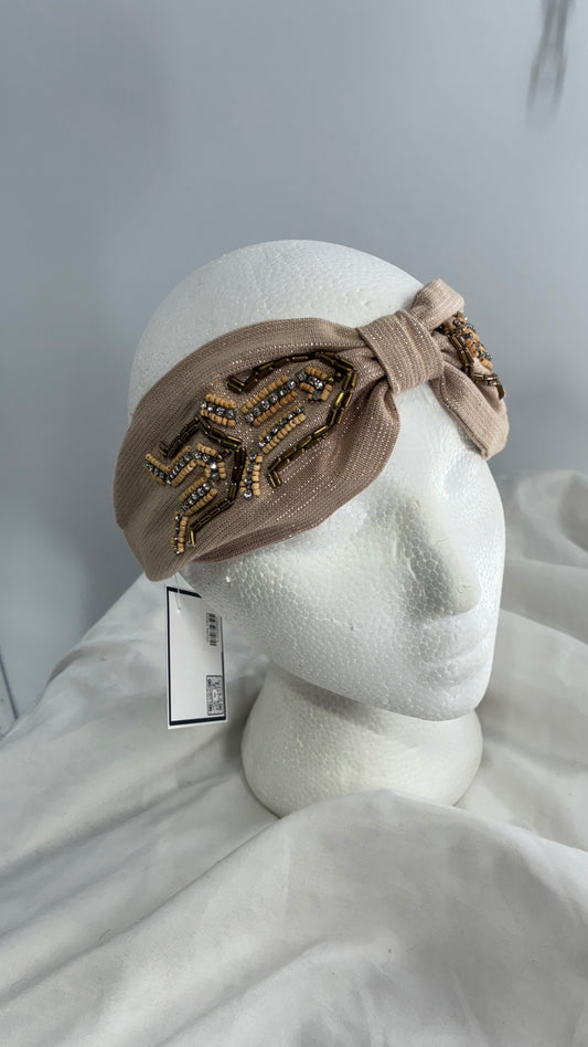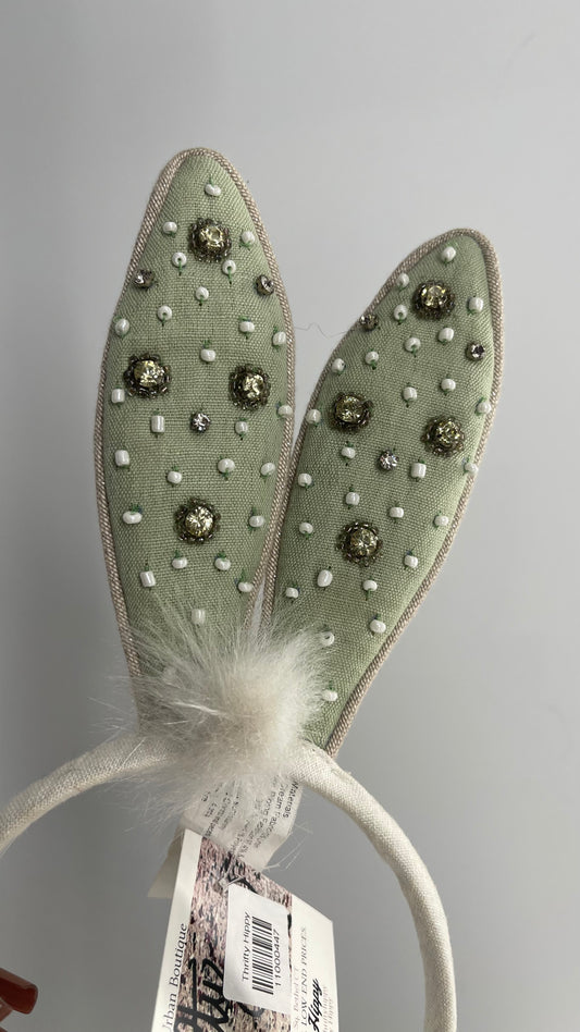 Anthropologie Bunny Rabbit Ears Embellished Beaded Sage Green Headband