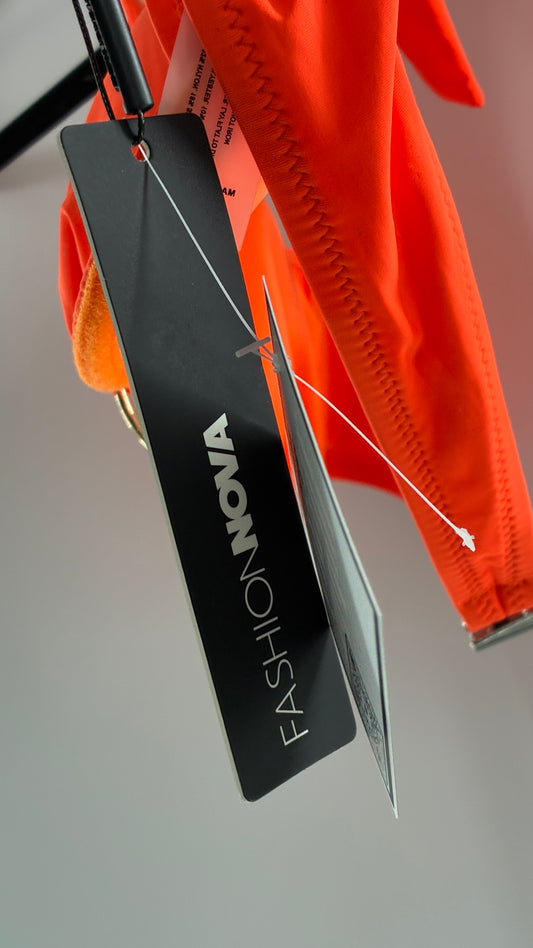 FASHION NOVA Neon Orange Underwire Swim Halter with Tags Attached (Medium)