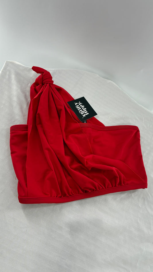 BETH RICHARDS KNOT Red Bandeau Tie Shoulder Swim/Bikini Top (Medium)