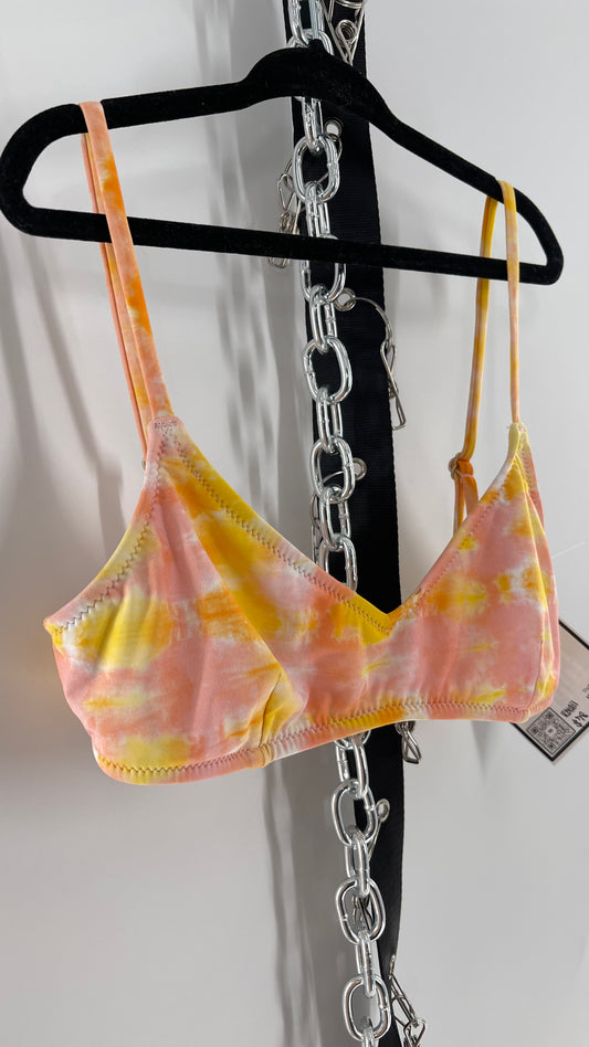 RHYTHM Pink/Yellow Tie Dye Bikini/Swim Top (XS)