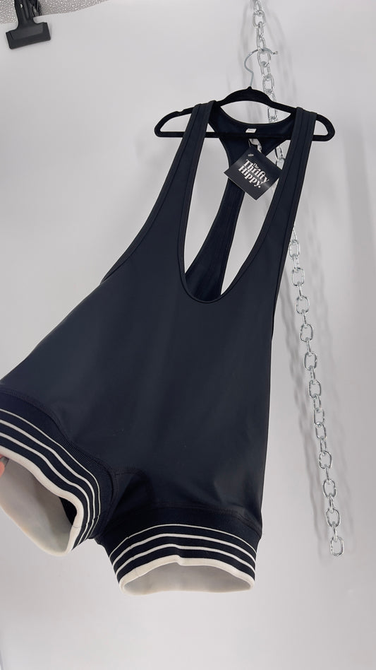Without Walls Black Swim Romper with Striped Elastic Hems (XS)