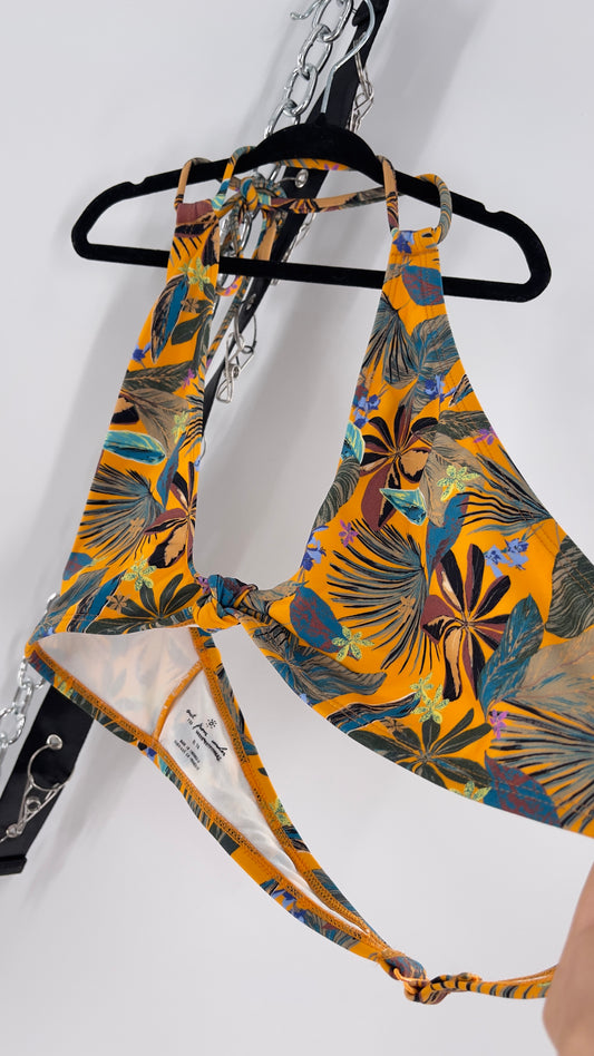 Urban Outfitters Out From Under Mustard Tropical Patterned Halter Swim Top (XL)