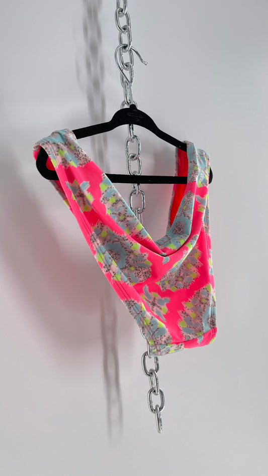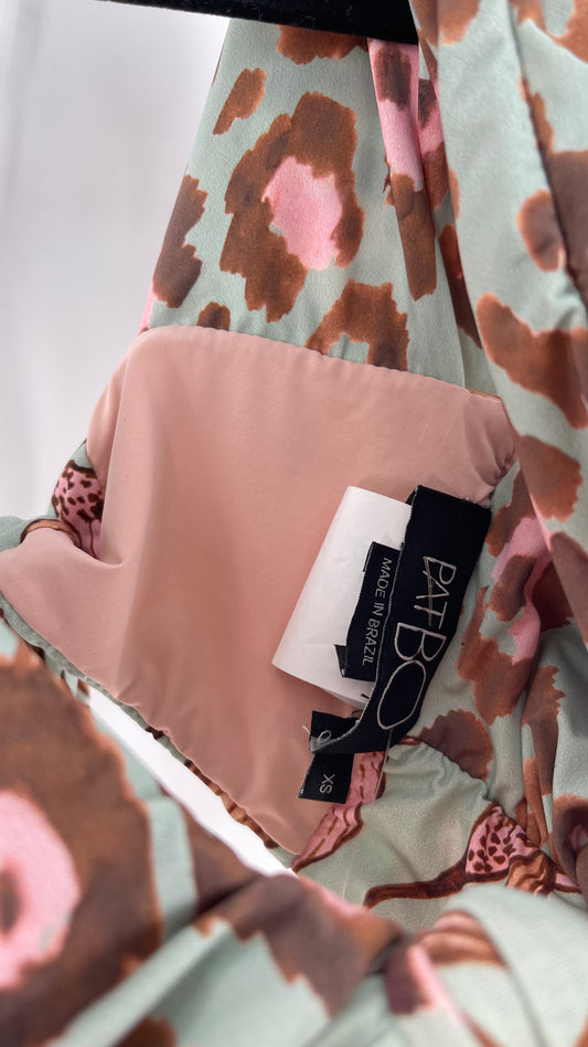 PatBo Light Blue Cheetah Brazilian Swim Top with Tie Bust and Shoulders (XS)