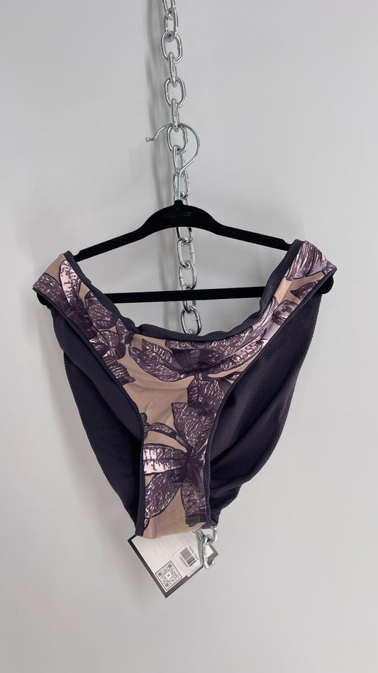 Maaji Deep Purple and Leaf Patterned Reversible Swim Bottoms NWOT (XL)