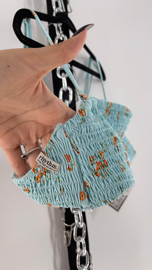 RHYTHM. Baby Blue Smocked Swim/Bikini Top (Medium)