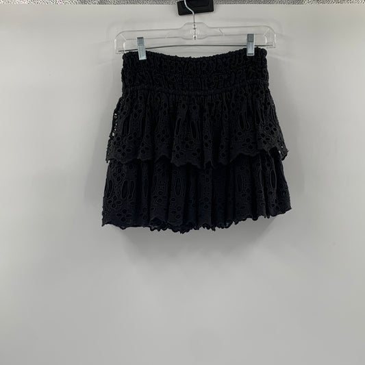 Free People Black Eyelet Tiered Mini Skirt (Sz XS)
