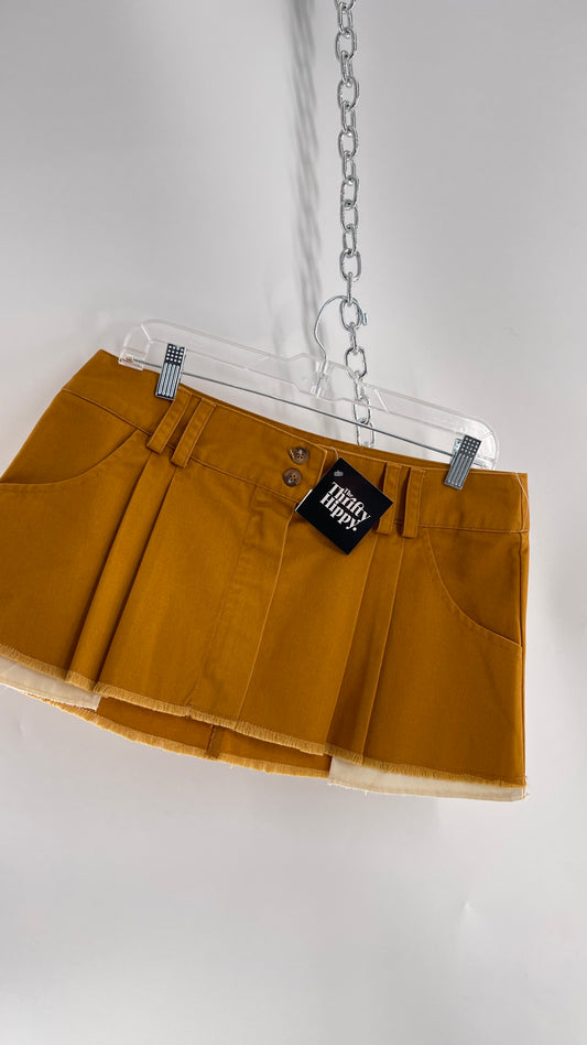BDG Pumpkin Orange Pleated Mini Skirt with Exposed Pockets (Medium)