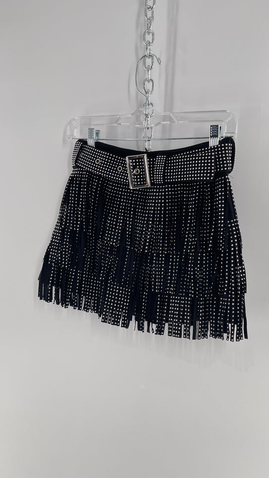 Altar’d State Black Belted Studded Fringe Mini Skirt with Tags Attached (Small)