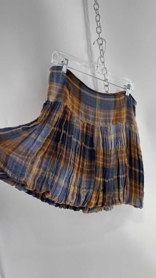 Free People Plaid Blue Brown Mini Skirt with Balloon Hem with Tags Attached (12)